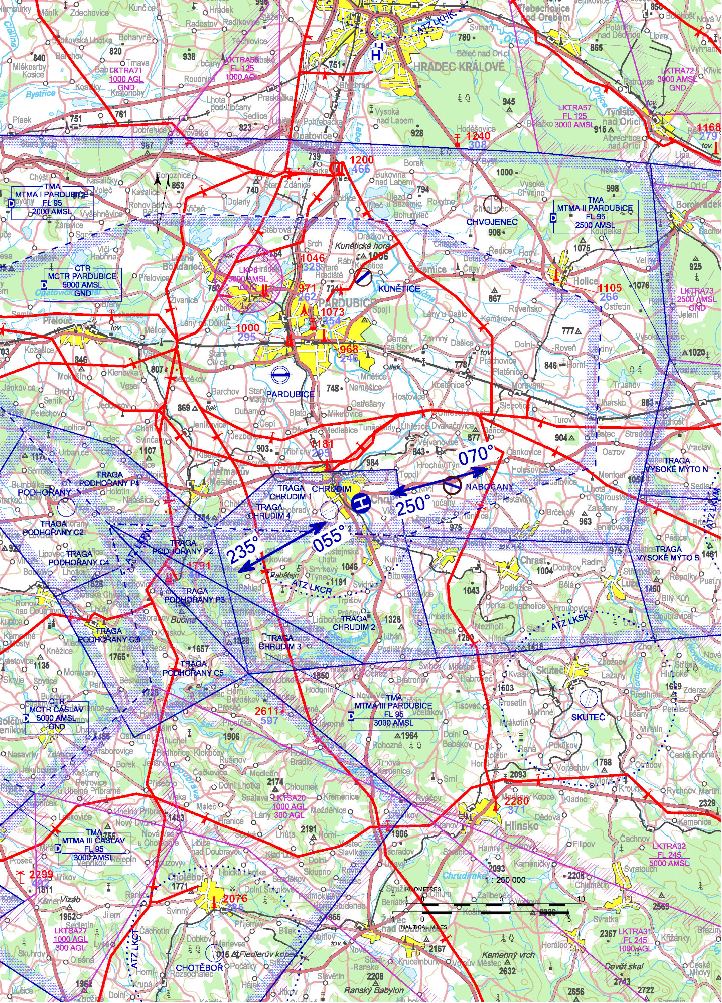 VFR day | 055°, 250° | 070°, 235° |