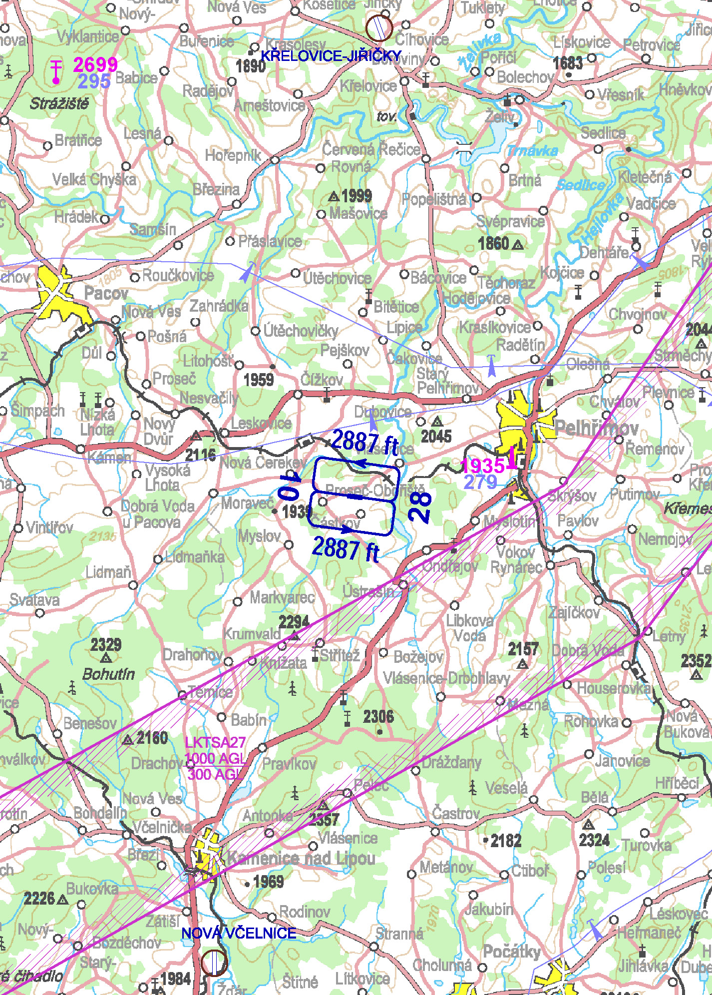 3.1Lety pouze s předběžným povolením. Při letech po okruhu nelétat nad okolními obcemi v menší výšce než 1000 ft (300 m) AGL. Při silném NE větru nebezpečí turbulence.