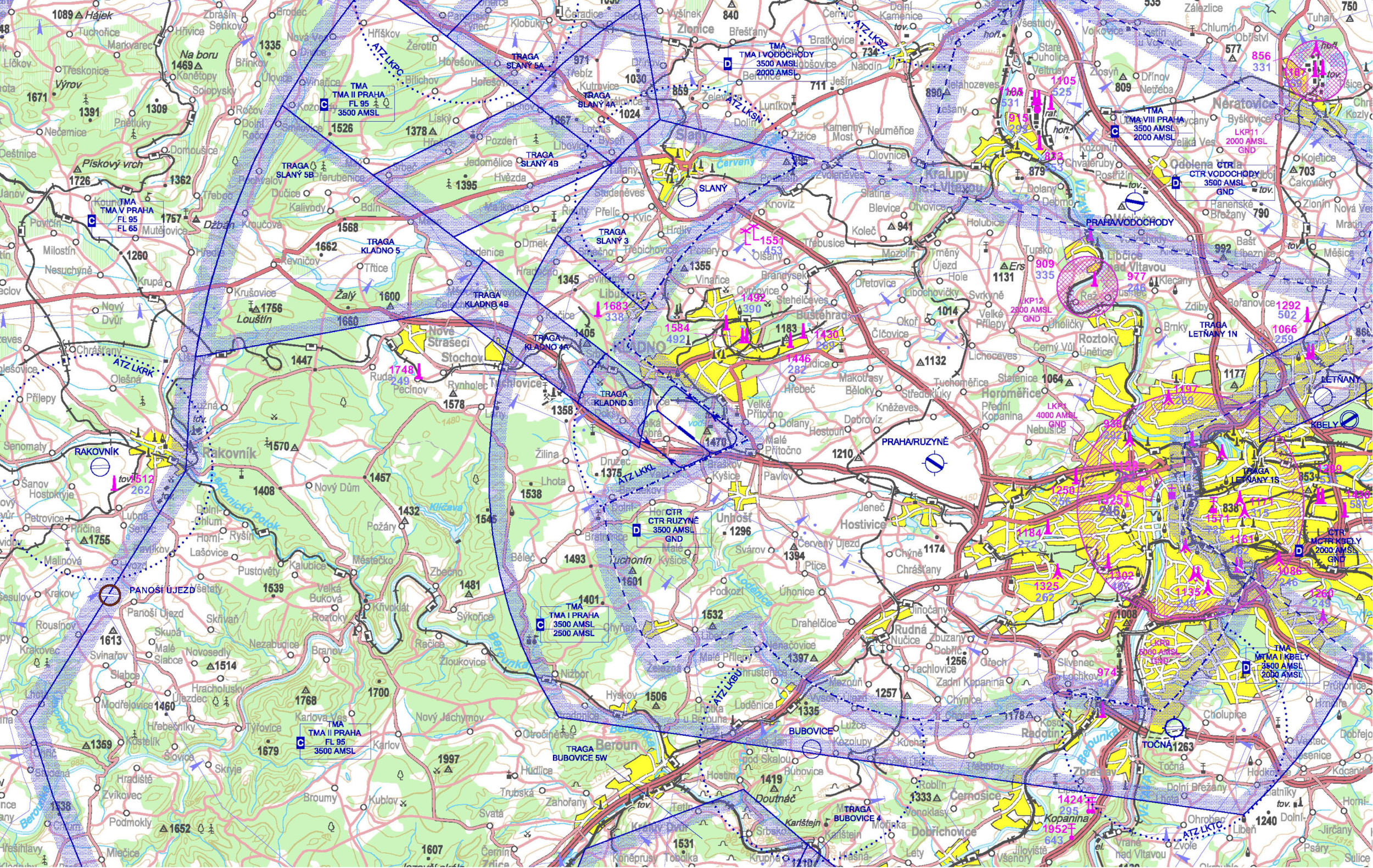 1.5Přilétávající letadla se mohou pohybovat pouze mimo CTR Ruzyně v maximální výšce 2500 ft AMSL mimo ATZ, v prostoru ATZ již pouze 2000 ft / 610 m AMSL.