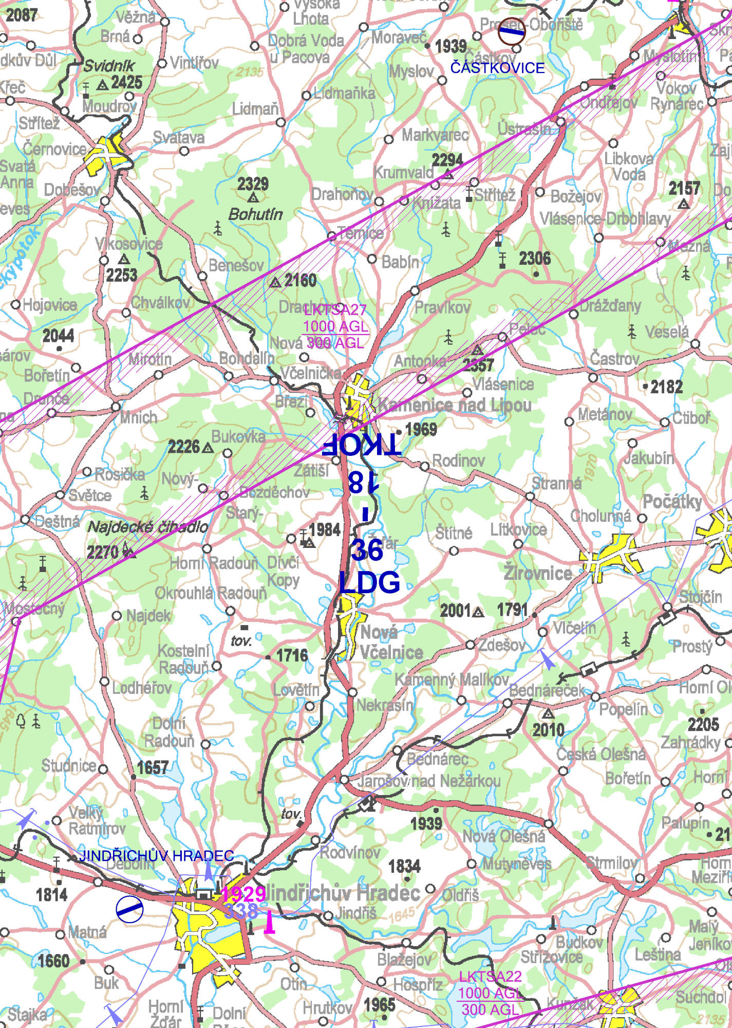 3.1Při N větru turbulence za lesem. 60 m před prahem RWY 36 je železniční trať bez nadzemního elektrického vedení. 3 km NW od plochy SLZ je prostor LKTSA27.