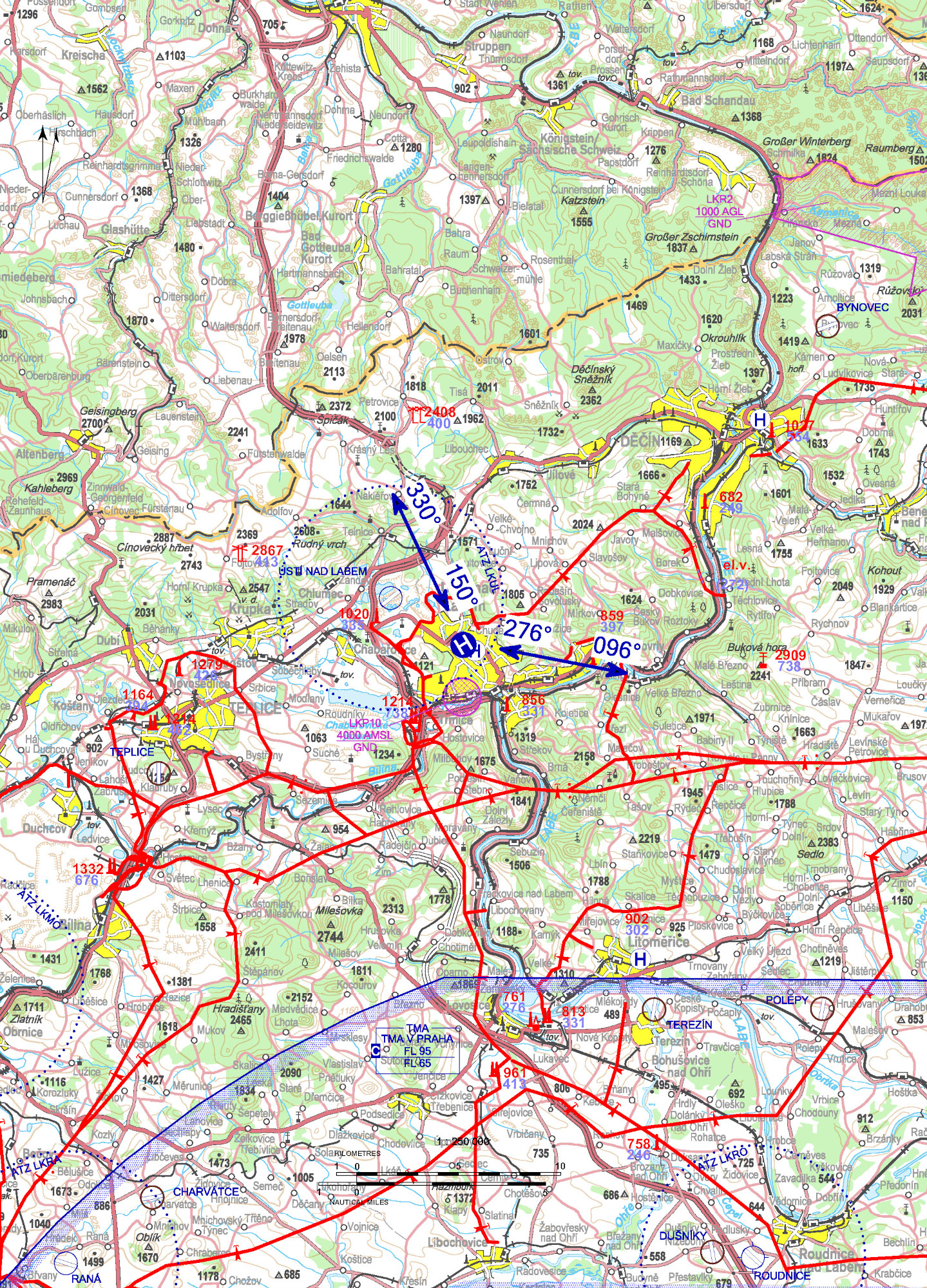 | VFR den | 150°, 276° | 330°, 096° |