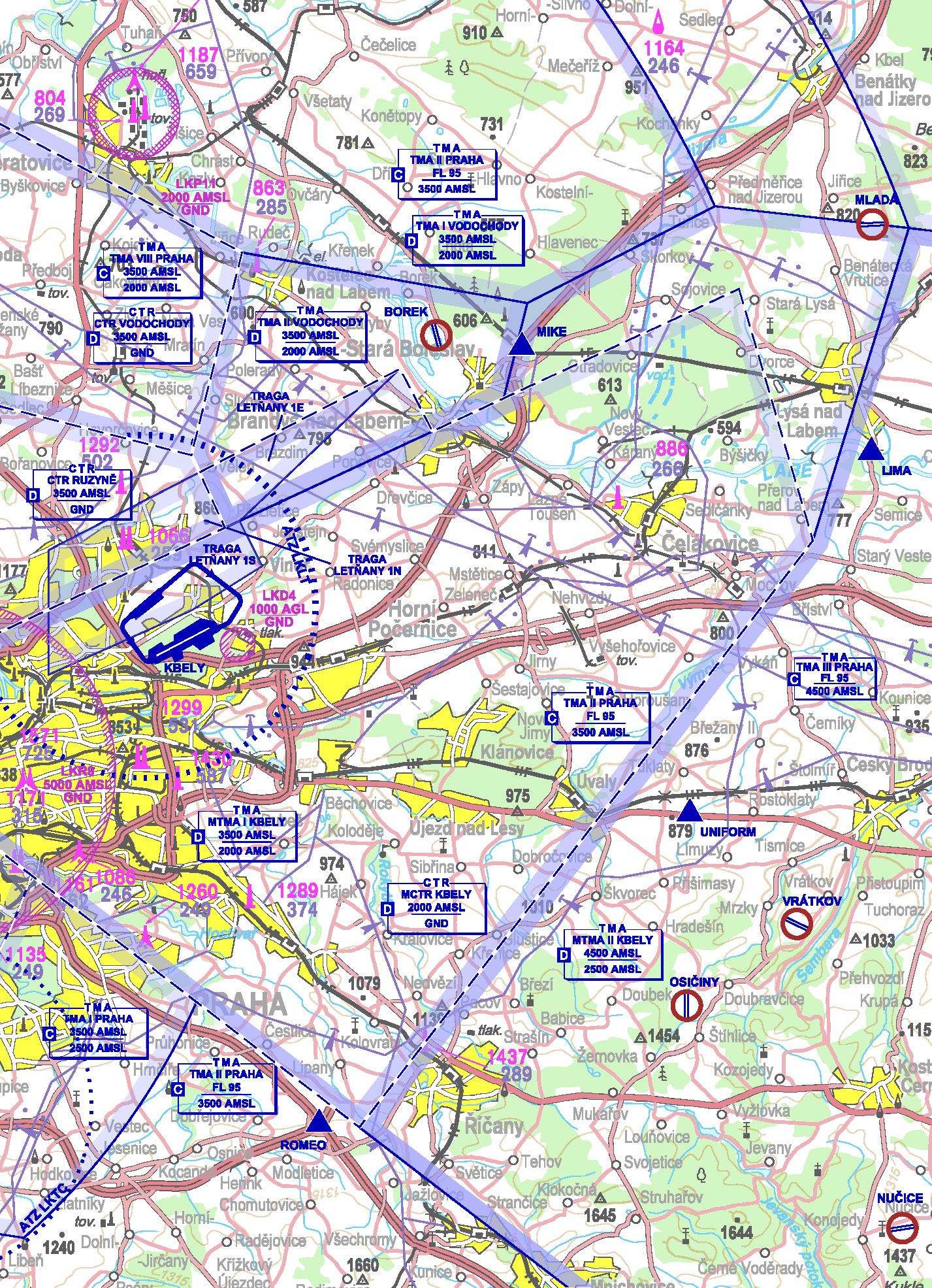 | VFR vstupní a výstupní body do/z MCTR Kbely / ATZ LKLT | ||
