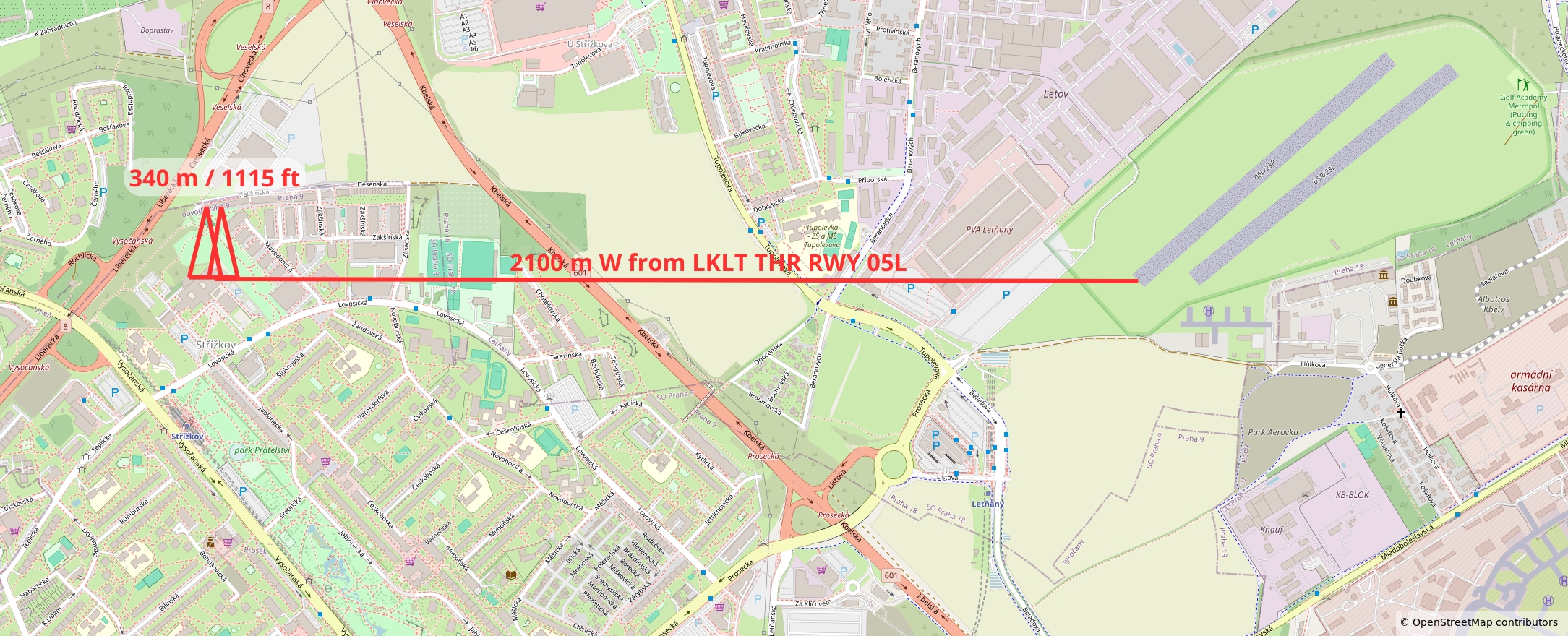 Letňany (LKLT) - překážka v blízkosti AD
